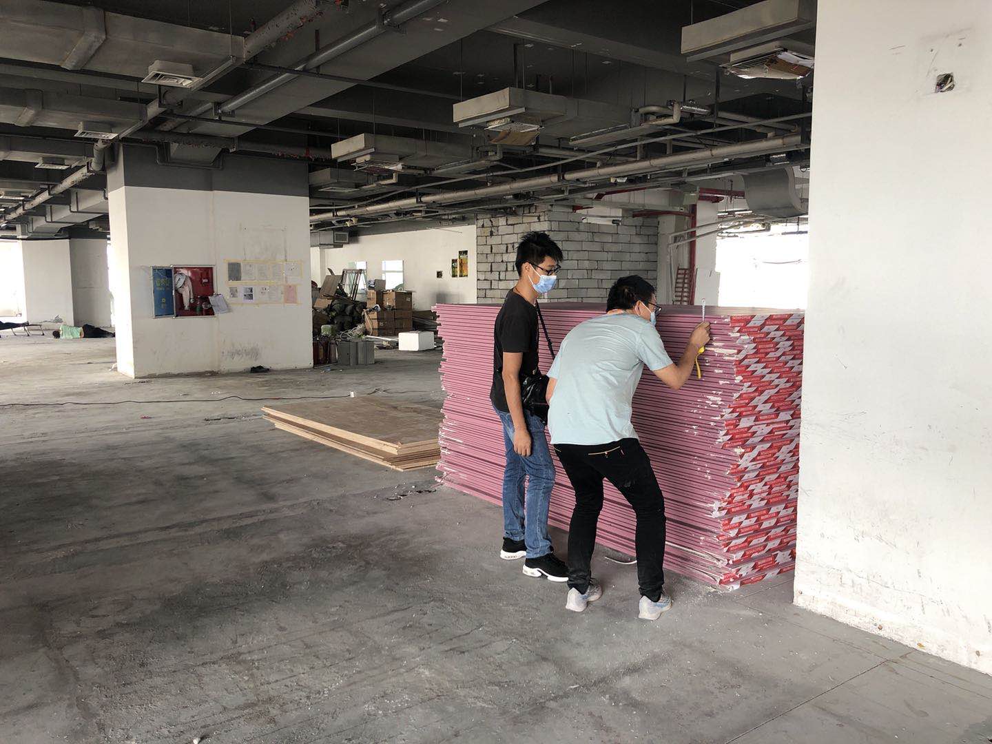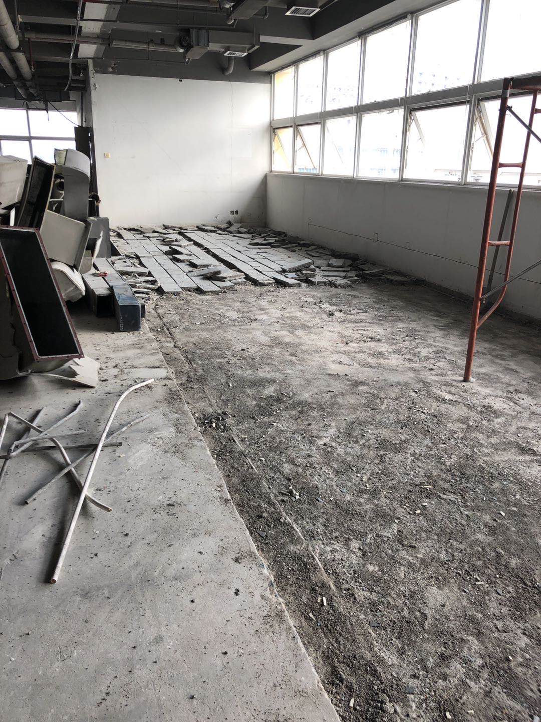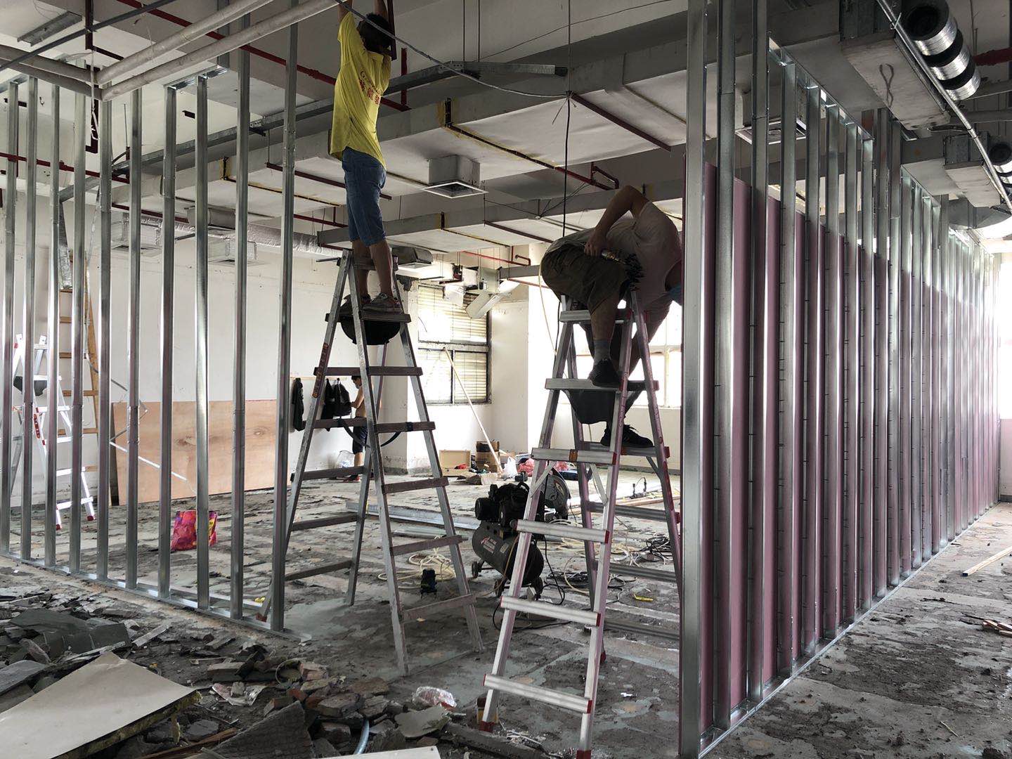 上川建設施工團隊趕在端午節前,對6樓辦公區場進行拆除施工作業。